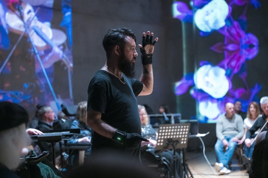 I’m Kris Halpin, a singer, songwriter and composer. Most people know me as the MiMu Gloves guy. I’m a Disabled artist, amplifying Disability Representation across the music industries. I’m one half of Dyskinetic. That’s the main event, so head that to enquire about our radical musical inclusion work.